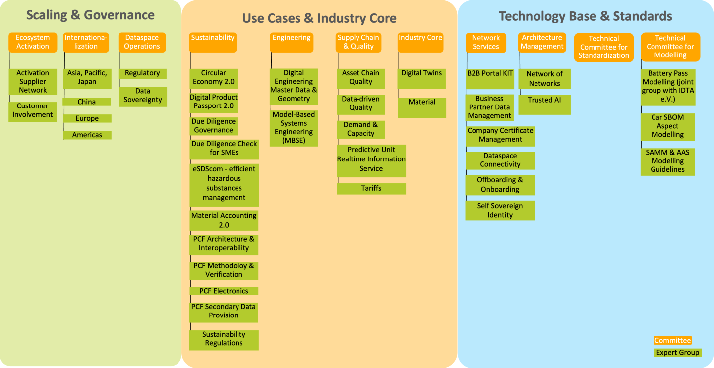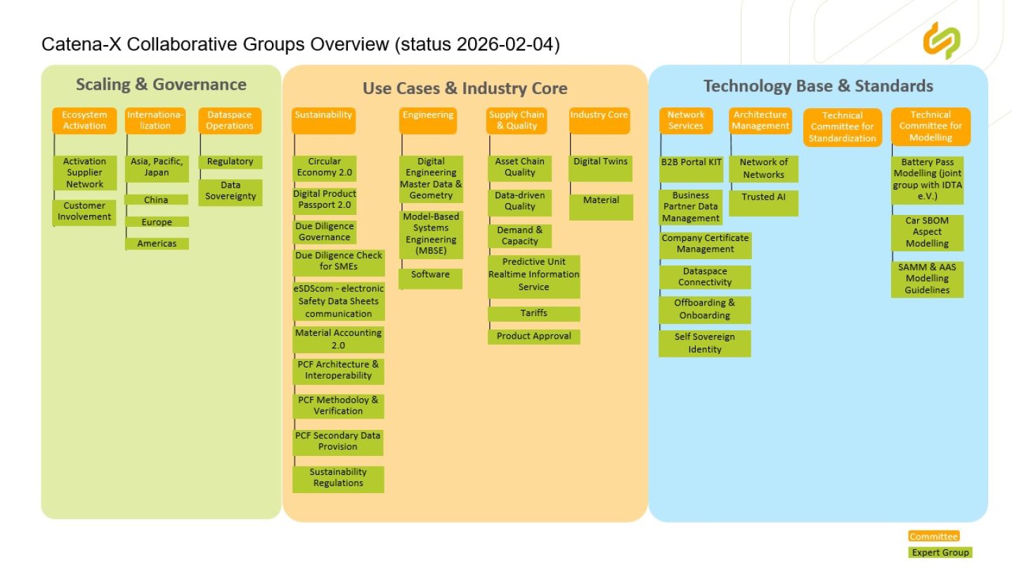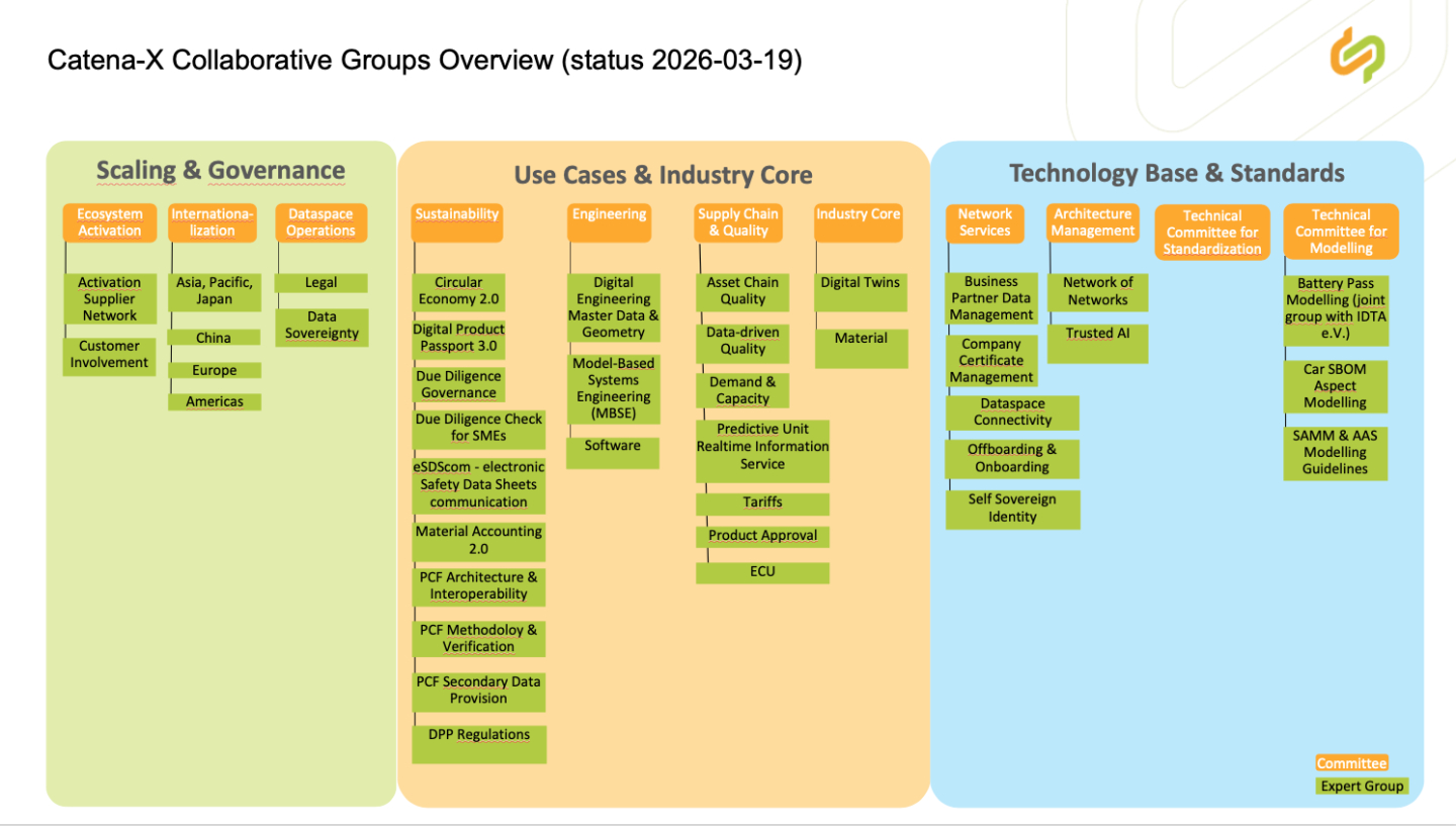 What follows is an in-depth overview of the current activities, results, and priorities of each expert group. We regularly share updates, new publications, and opportunities for involvement within the Catena-X ecosystem.